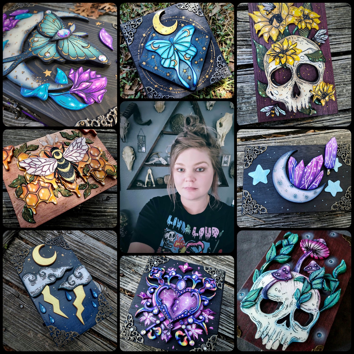 Hi, I'm Candace Houchin. I'm the artist behind Lunar Art House. All of my art is handmade, start to finish, from wood cutting to detail painting. With each piece, I hope to create something hauntingly magical for someone to find. I'm inspired by nature, the unknown and paranormal, spooky and celestial. I'm so grateful for the support and appreciation I receive for my work that allows me to pursue art full time. Thank you for visiting my art space.